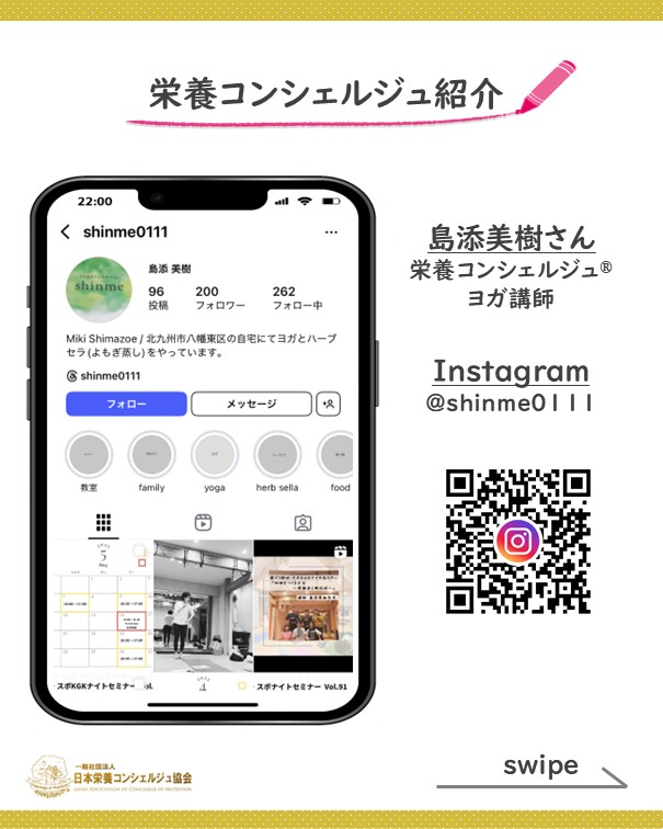 体内からのコンディショニングでライフパフォーマンスを高める栄養資格、栄養コンシェルジュを取得した島添さんのご活動が健康投資をサポートして、人と未来を輝かせます☆
