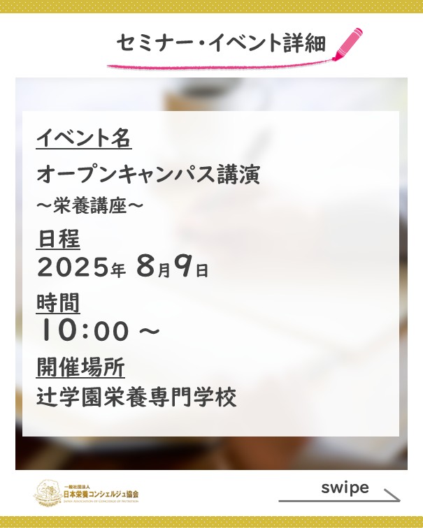 栄養士をめざす高校生必見!日本栄養コンシェルジュ協会 管理栄養士の廣瀬直樹先生が辻学園栄養専門学校にて行われるオープンキャンパスにて行われる、『栄養講座あり☆クリームソーダ&プリン』の栄養講座パートの講師を務めます!