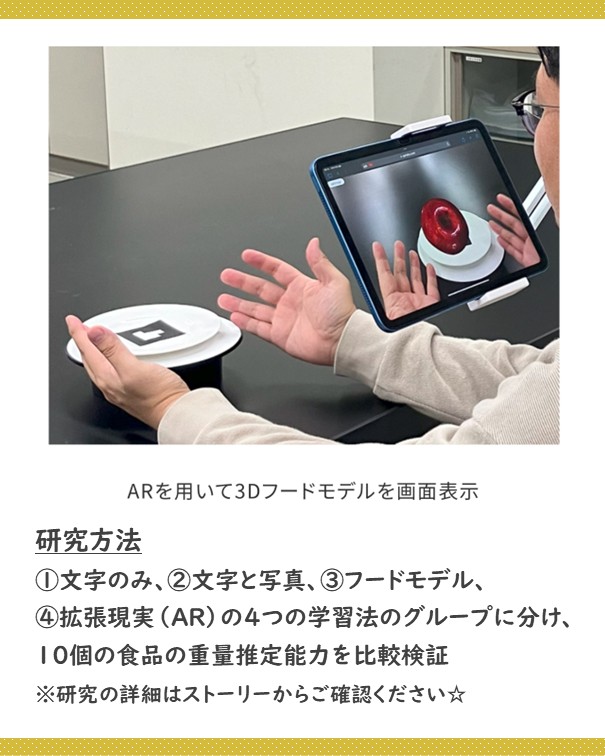 【論文掲載】ARで食材の重さを見抜く力が身に付く!新しい学習方法を開発