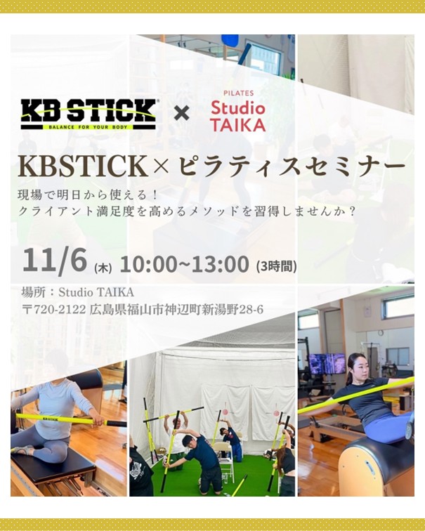 2ッ星栄養コンシェルジュでトレーナーの斎藤大介さんが11月6日(木)に広島にて開催される、『KBSTICKベーシック×ピラティスセミナー』にて講師を務められます☆