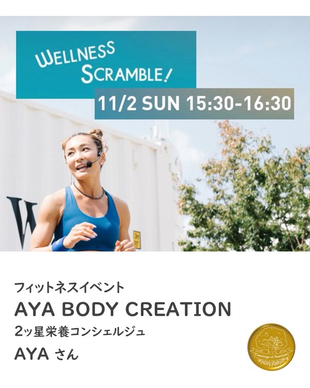 2ッ星栄養コンシェルジュでフィットネスプロデューサーのAYAさんが11月2日(日)に東京にて開催されるフィットネスイベント、『AYA BODY CREATION』に出演されます☆