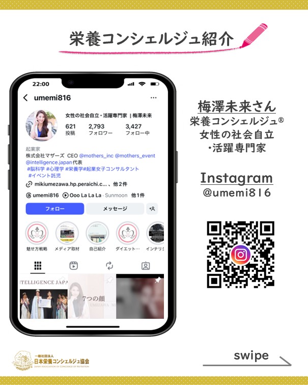 全世代&ステージに応じた栄養サポートでライフパフォーマンスを高める栄養資格、栄養コンシェルジュを取得した梅澤さんのご活動が健康投資をサポートして、人と未来を輝かせます☆