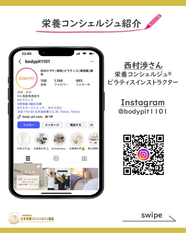 ☆西村渉さんが運営するスタジオ、BODY PITのInstagramアカウント☆