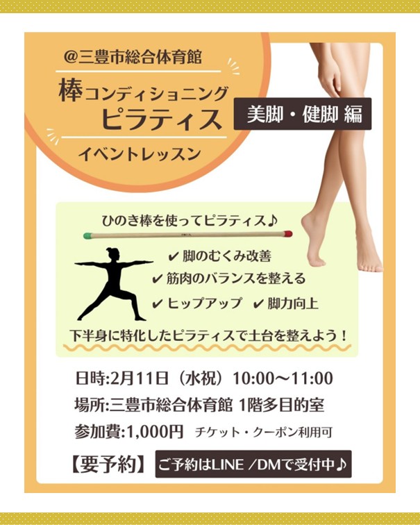 むくみ知らずの軽い脚、棒があれば手に入ります! ピラティス×棒で理想のバランスボディを目指しませんか?~栄養コンシェルジュ®活動報告~