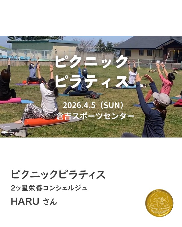 2ッ星栄養コンシェルジュでピラティスインストラクターのHARUさんが4月5日(日)に鳥取にて、『ピクニックピラティス』を開催されます☆