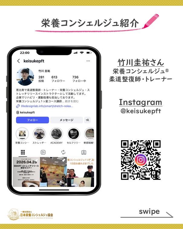2ッ星栄養コンシェルジュで柔道整復師・トレーナーの竹川圭祐さんが4月26日(日)に東京にて開催される、『ストレッチリリースベーシック認定講習会』にて講師を務められます☆