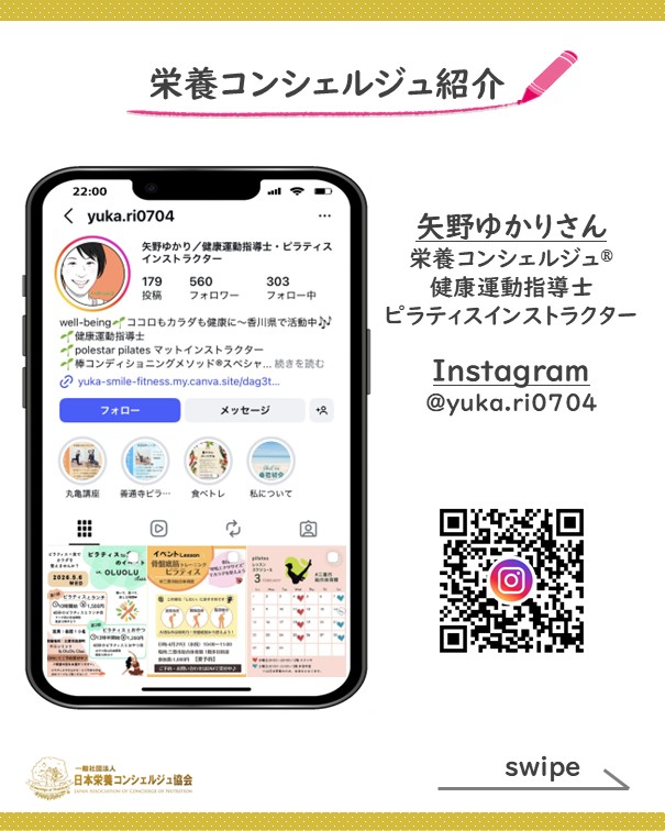 動いて、食べて、カラダが喜ぶ。ピラティス×食の最強タッグ! 肩こりや腰痛にサヨナラして、軽やかな体を手に入れませんか?~栄養コンシェルジュ®活動報告~