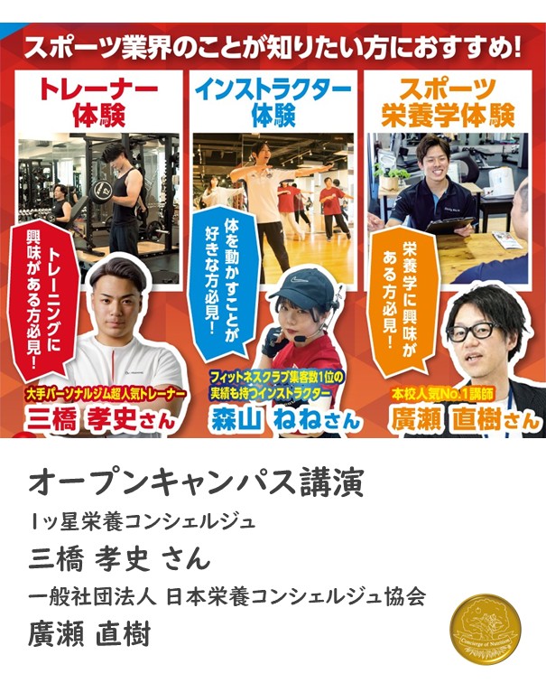 1ッ星栄養コンシェルジュでトレーナーの三橋孝史さんと日本栄養コンシェルジュ協会 管理栄養士の廣瀬直樹が大阪リゾート&スポーツ専門学校にて行われるオープンキャンパスにて講演します!
