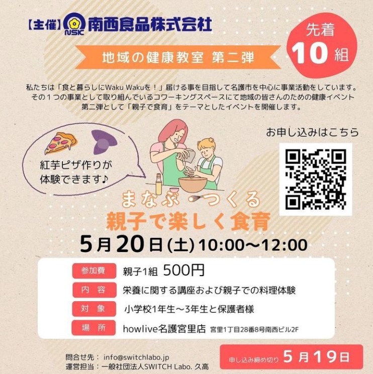 親子で栄養について学びたい方や紅芋を使ったピザづくりを体験したい皆様にお勧めです☆