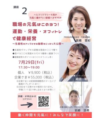 2ッ星栄養コンシェルジュの袴田雅江さんが7/29(金)に栄養講座の講師を務められます!