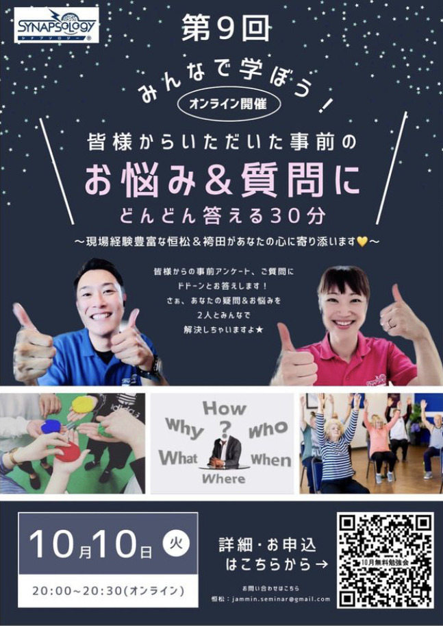 2ッ星栄養コンシェルジュでフィットネスインストラクターの袴田雅江さんが10/10(火)にシナプソロジー無料勉強会を開催されます☆