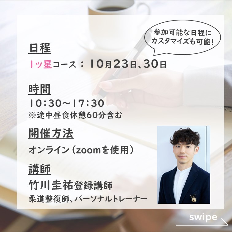 【1ッ星コース】第1日目: 10月23日(水)、第2日目: 10月30日(水)