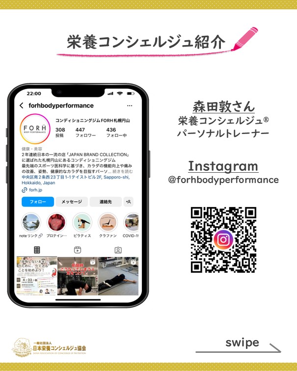 ☆森田敦さんが代表を務めるコンディショニングジムFORHのInstagramアカウント☆