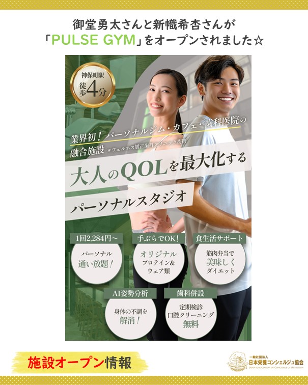 パーソナルジム、PULSE GYMオープン~栄養コンシェルジュ®活動報告~