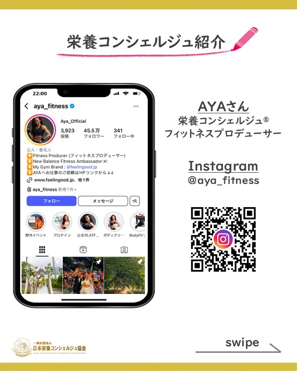 体内からのコンディショニングでライフパフォーマンスを高める栄養資格、栄養コンシェルジュを取得したAYAさんのご活動が健康投資をサポートして、人と未来を輝かせます☆