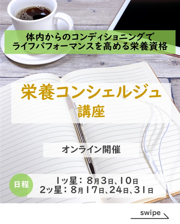 体内からのコンディショニングでライフパフォーマンスを高める栄養資格、栄養コンシェルジュ®講座が8月3日(日)からスタートします!