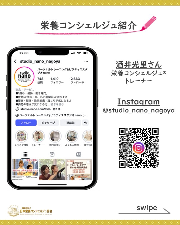 ☆酒井光里さんが所属するパーソナルトレーニング&ピラティススタジオnanoのInstagramアカウント☆