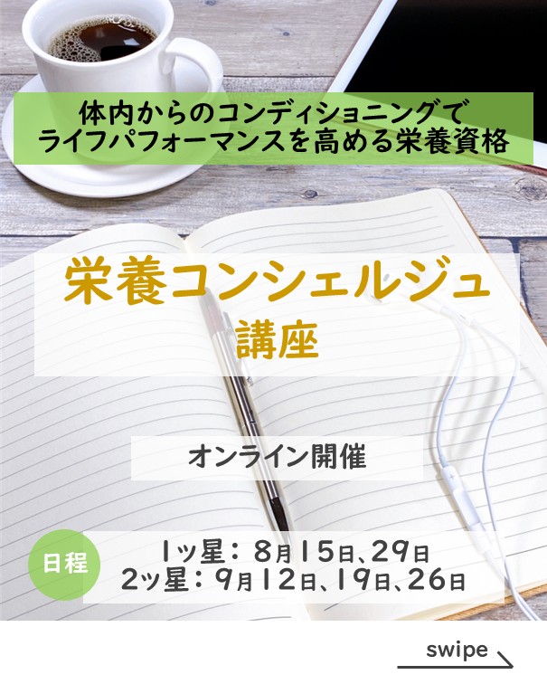 体内からのコンディショニングでライフパフォーマンスを高める栄養資格、栄養コンシェルジュ®講座が8月15日(金)からスタートします!