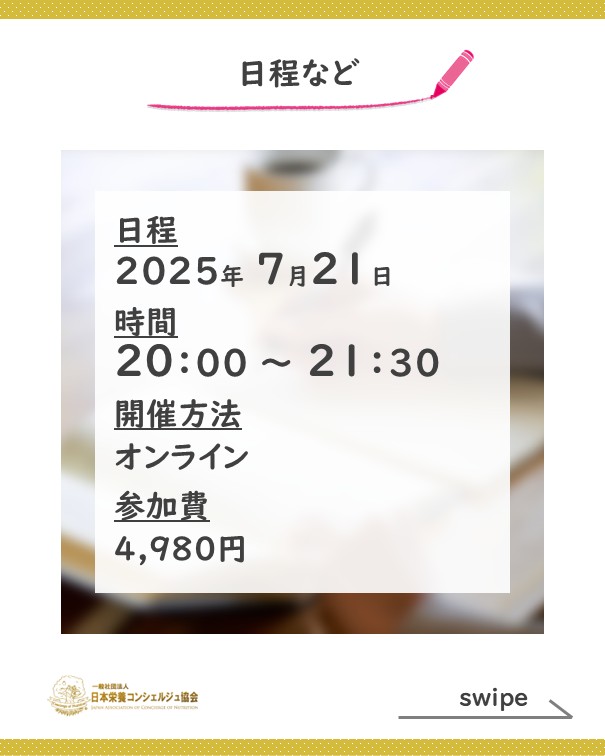 現場でそのまま使えるネタをゲットして資格も更新! あなたの引き出しを倍増させませんか?~栄養コンシェルジュ®活動報告~