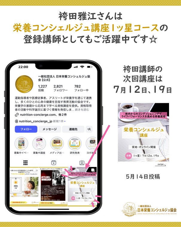 体内からのコンディショニングでライフパフォーマンスを高める栄養資格、栄養コンシェルジュを取得した袴田さんのご活動が健康投資をサポートして、人と未来を輝かせます☆