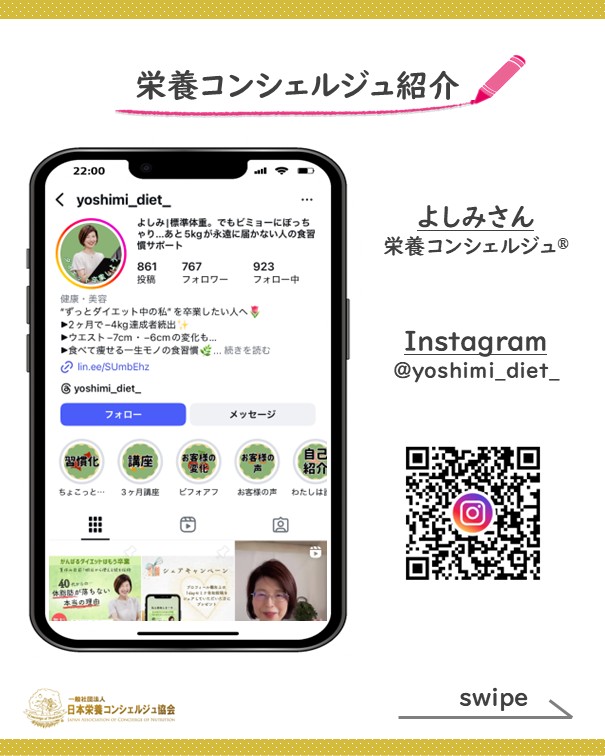 体内からのコンディショニングでライフパフォーマンスを高める栄養資格、栄養コンシェルジュを取得したよしみさんのご活動が健康投資をサポートして、人と未来を輝かせます☆