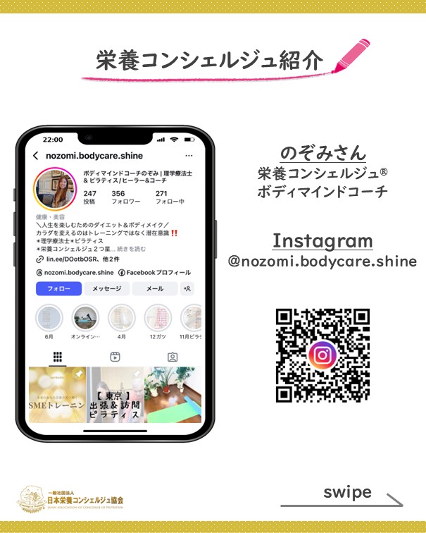 体内からのコンディショニングでライフパフォーマンスを高める栄養資格、栄養コンシェルジュを取得したのぞみさんのご活動が健康投資をサポートして、人と未来を輝かせます☆