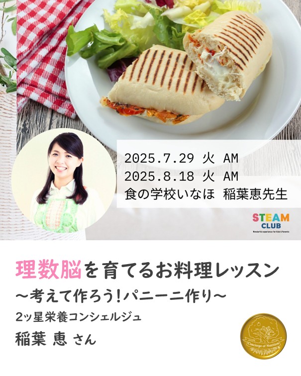 2ッ星栄養コンシェルジュで管理栄養士の稲葉恵さんが7月29日(火)、8月18日(火)に大阪にて行われるお料理レッスン、『考えて作ろう!パニーニ作り』にて講師を務められます☆