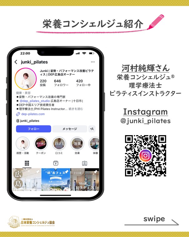 体内からのコンディショニングでライフパフォーマンスを高める栄養資格、栄養コンシェルジュを取得した河村さんのご活動が健康投資をサポートして、人と未来を輝かせます☆