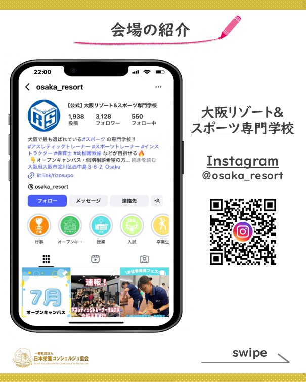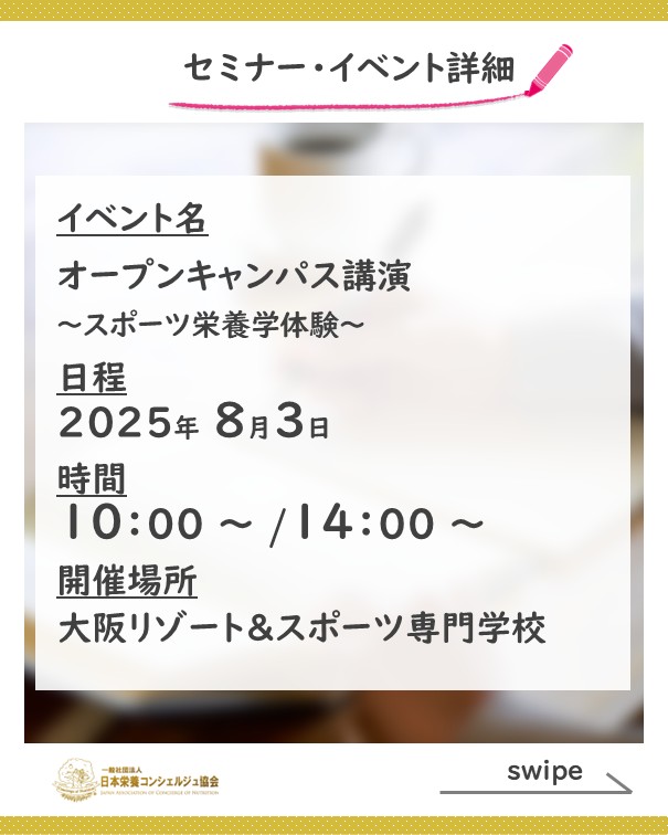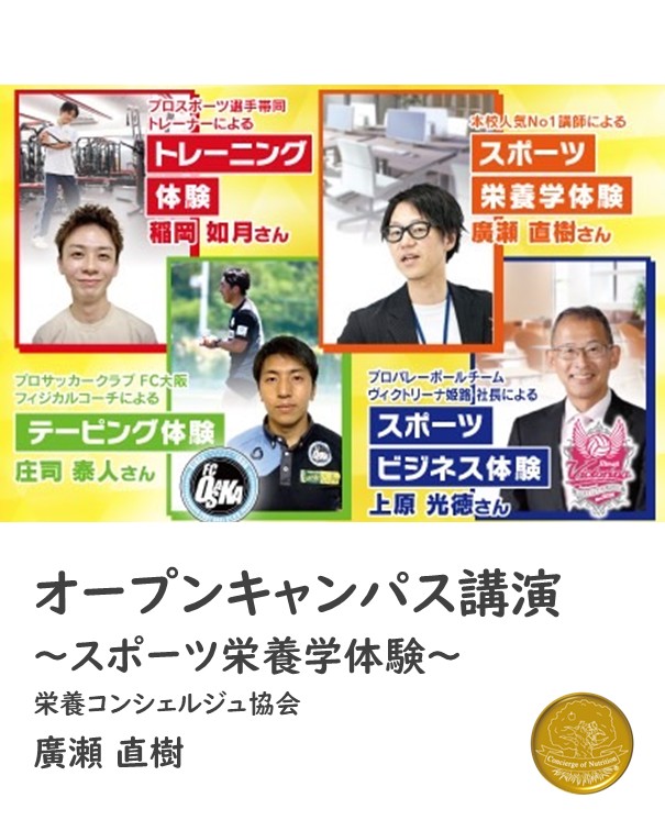 日本栄養コンシェルジュ協会 管理栄養士の廣瀬直樹が大阪リゾート&スポーツ専門学校にて行われるオープンキャンパスにて講演します!