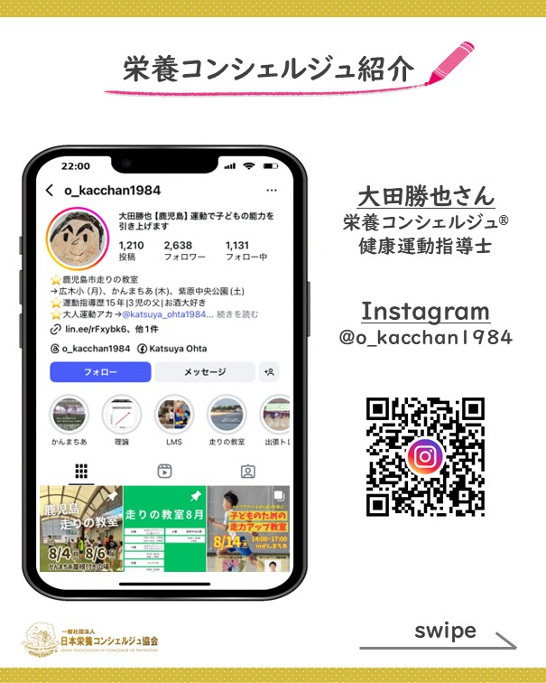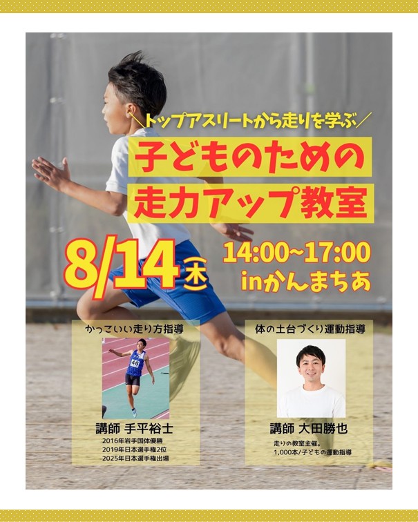 2ッ星栄養コンシェルジュで健康運動指導士の大田勝也さんが8月14日(木)に鹿児島にて行われる、『子どものための走力アップ教室』にて講師を務められます☆