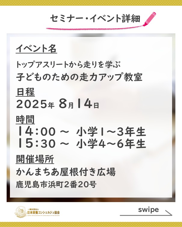 もっと速く、もっとカッコよく走りたいキミへ! プロが教える本気の走力アップ教室に参加しませんか?~栄養コンシェルジュ®活動報告~