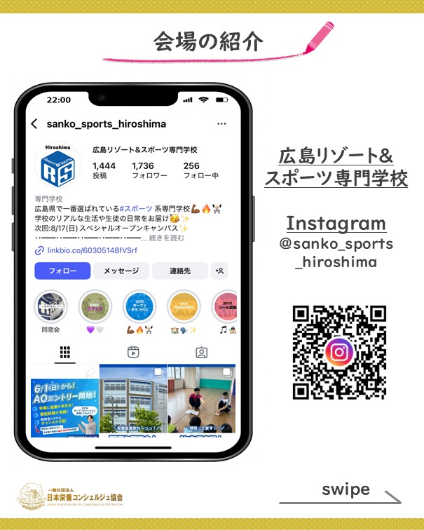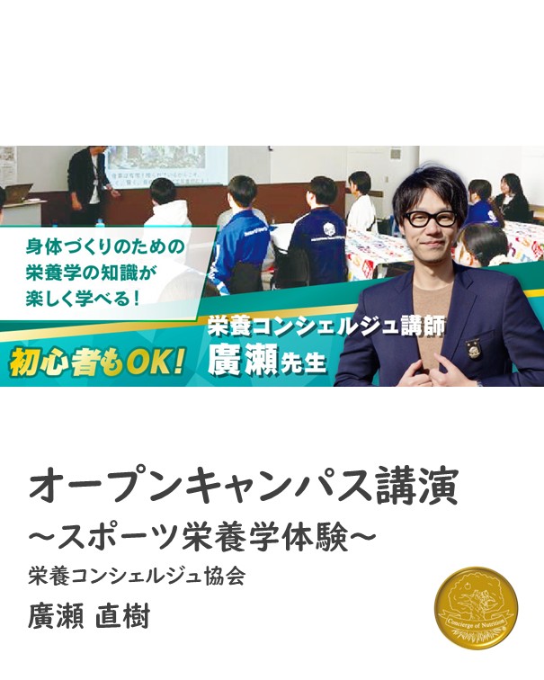 日本栄養コンシェルジュ協会 管理栄養士の廣瀬直樹が広島リゾート&スポーツ専門学校にて行われるオープンキャンパスにて講演します!