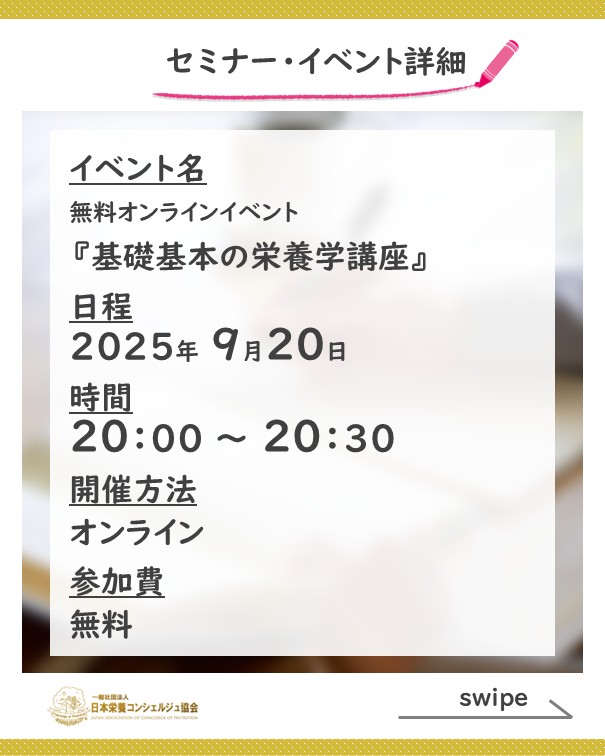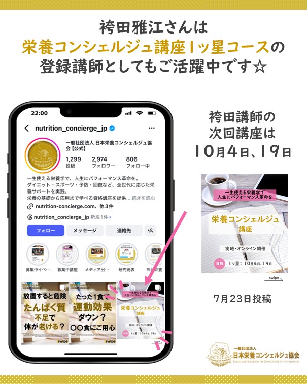 袴田さんは10月4日、19日開催の栄養コンシェルジュ講座 1ッ星コースの講師でもあります☆