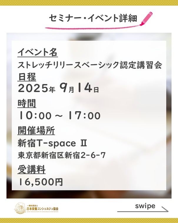 運動指導の幅が広がる! ストレッチリリースで無限の可能性を手に入れませんか?~栄養コンシェルジュ®活動報告~