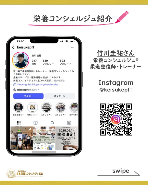 2ッ星栄養コンシェルジュで柔道整復師・トレーナーの竹川圭祐さんが9月14日(日)に東京にて行われる、『ストレッチリリースベーシック認定講習会』にて講師を務められます☆