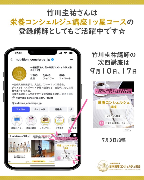 全世代&ステージに応じた栄養サポートでライフパフォーマンスを高める栄養資格、栄養コンシェルジュを取得した竹川さんのご活動が健康投資をサポートして、人と未来を輝かせます☆