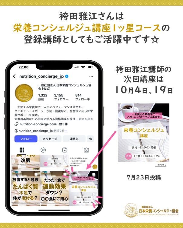 袴田さんは10月4日、19日開催の栄養コンシェルジュ講座 1ッ星コースの講師でもあります☆
