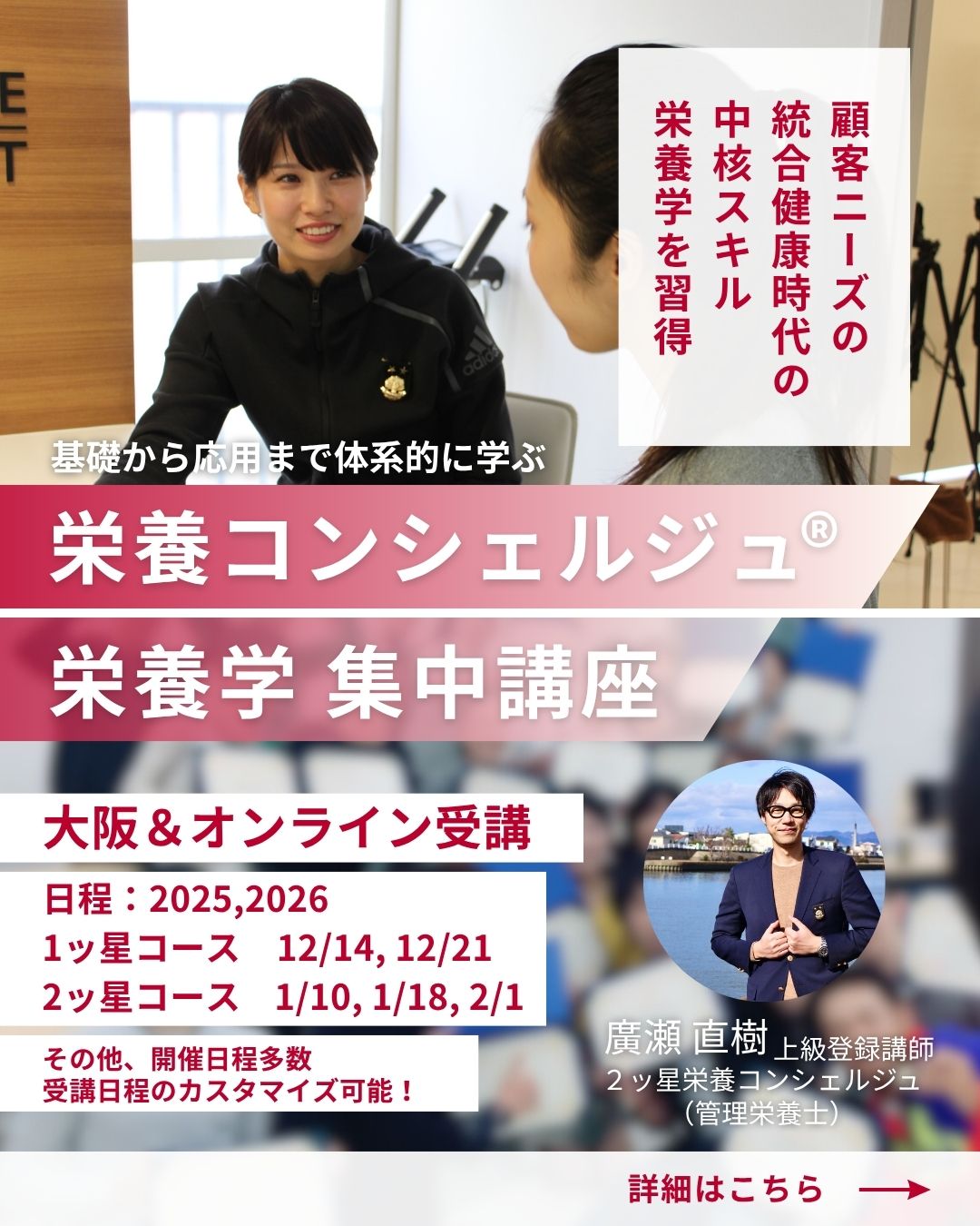 全世代&ステージに応じた栄養サポートでライフパフォーマンスを高める栄養資格、栄養コンシェルジュ®講座が12月14日(日)からスタートします!