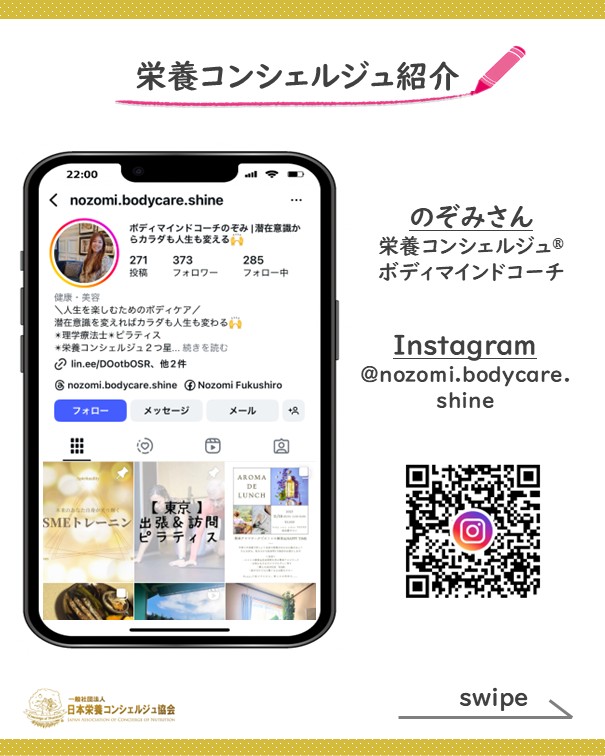 全世代&ステージに応じた栄養サポートでライフパフォーマンスを高める栄養資格、栄養コンシェルジュを取得したのぞみさんのご活動が健康投資をサポートして、人と未来を輝かせます☆