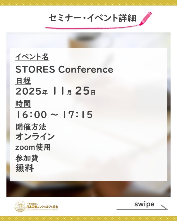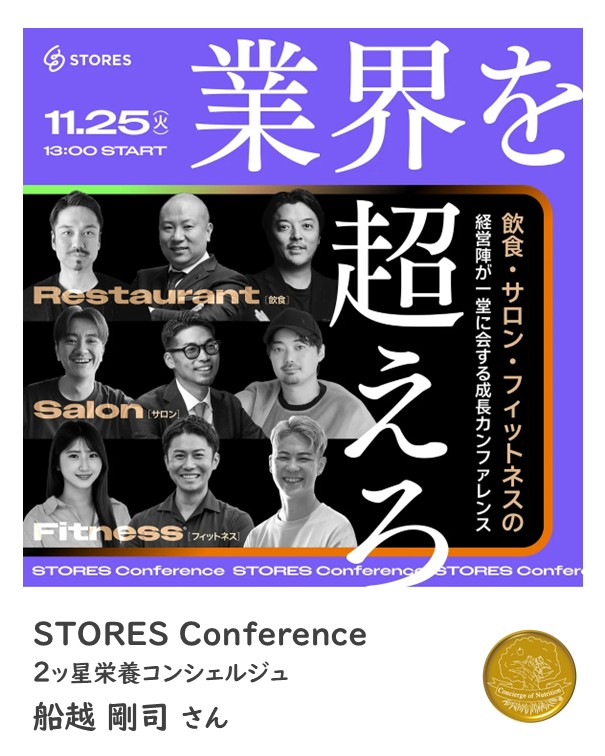 2ッ星栄養コンシェルジュで理学療法士の船越剛司さんが11月25日(火)にオンラインにて開催される、『STORES Conference』にて講師を務められます☆