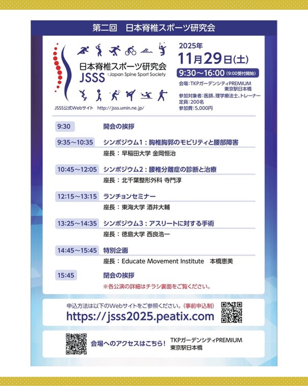 臨床やトレーニング指導に携わる方々にとって、有意義な学びの機会となりますので、ぜひご参加ください。