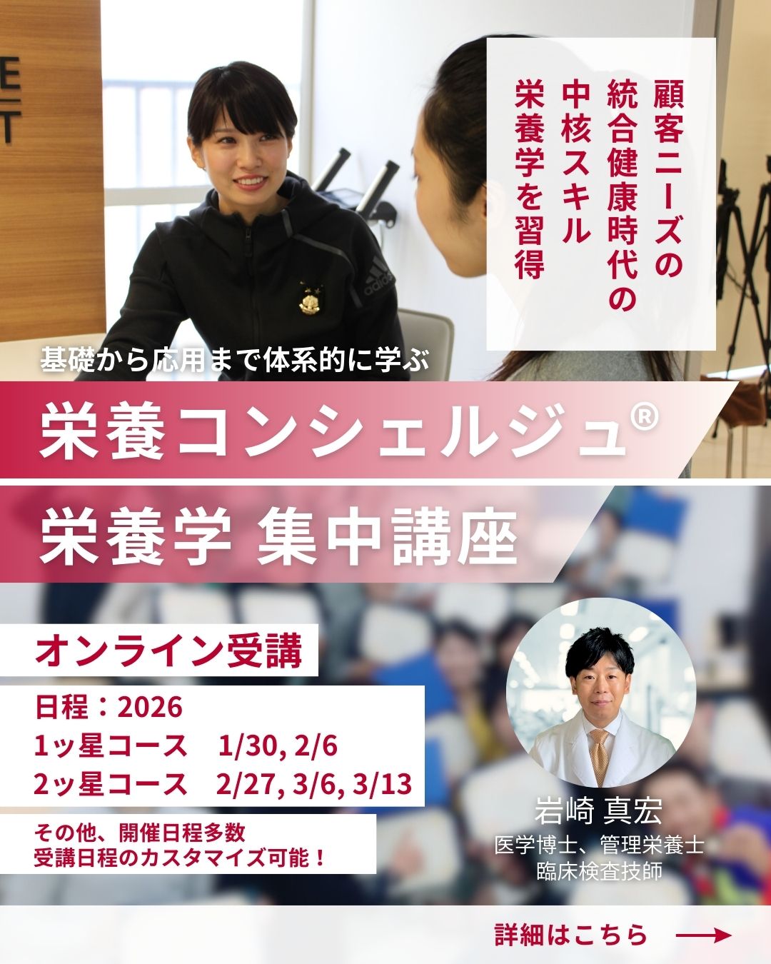 全世代&ステージに応じた栄養サポートでライフパフォーマンスを高める栄養資格、栄養コンシェルジュ®講座が1月30日(金)からスタートします!