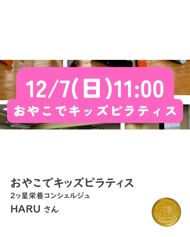 2ッ星栄養コンシェルジュでピラティスインストラクターのHARUさんが12月7日(日)に鳥取にて、『おやこでキッズピラティス』を開催されます☆