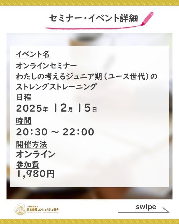 2ッ星栄養コンシェルジュでストレングスコーチの伊藤良彦さんが12月15日(月)にオンラインセミナー、『わたしの考えるジュニア期(ユース世代)のストレングストレーニング』にて講師を務められます☆
