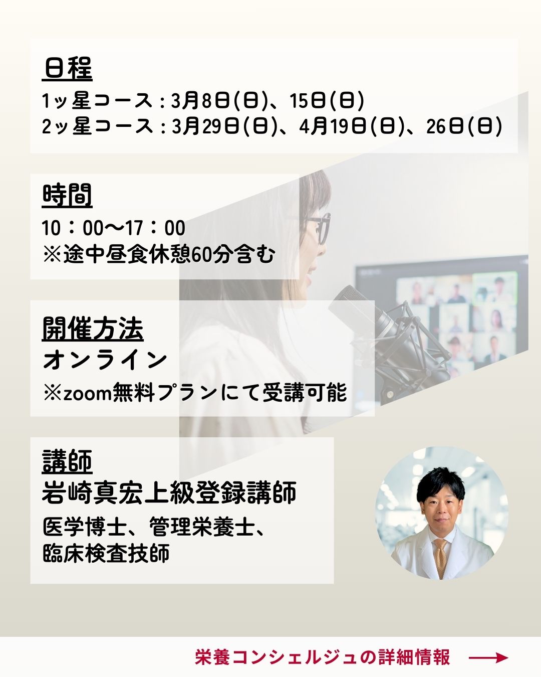 すべての悩みは栄養学で解決できる!栄養コンシェルジュ®講座が3月8日(日)からスタートします!