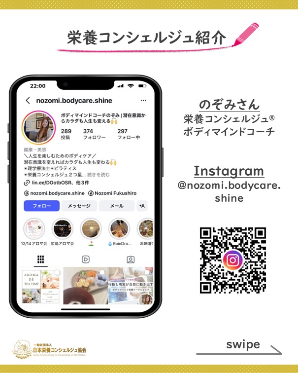 全世代&ステージに応じた栄養サポートでライフパフォーマンスを高める栄養資格、栄養コンシェルジュを取得したのぞみさんのご活動が健康投資をサポートして、人と未来を輝かせます☆