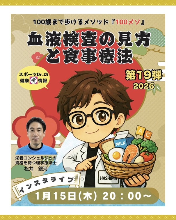 2ッ星栄養コンシェルジュで理学療法士·ピラティスインストラクターの松井銀河さんが1月15日(木)にインスタライブ、『血液検査の見方と食事療法』に出演されます☆