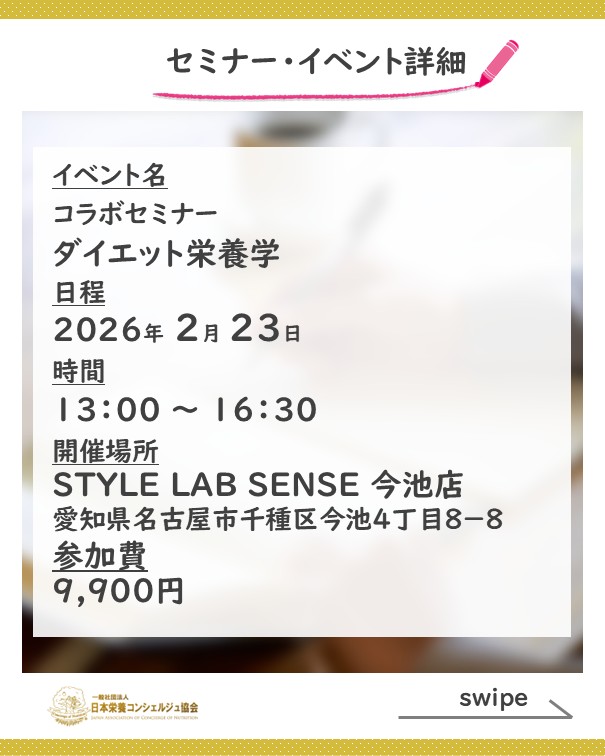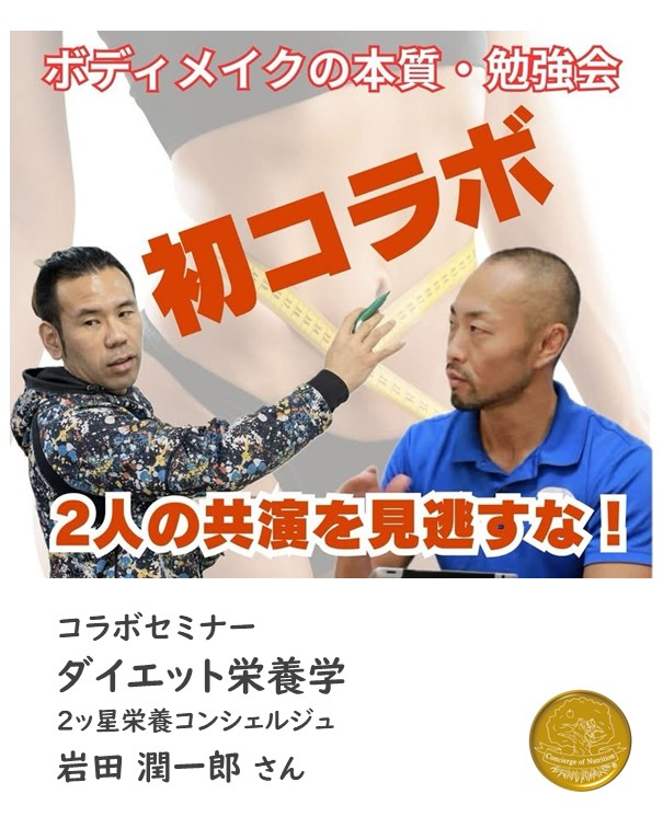 2ッ星栄養コンシェルジュで管理栄養士・トレーナーの岩田潤一郎さんが2月23日(月祝)に名古屋にて開催されるコラボセミナー、『ダイエット栄養学』にて講師を務められます☆