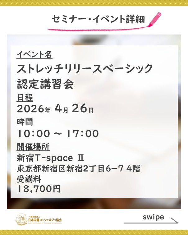 「この先生、他と違う!」って思われる秘訣、知りたくないですか? ストレッチリリースを習得して、施術の幅を一気に広げませんか?~栄養コンシェルジュ®活動報告~
