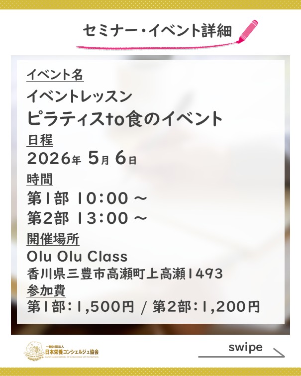 動いて、食べて、カラダが喜ぶ。ピラティス×食の最強タッグ! 肩こりや腰痛にサヨナラして、軽やかな体を手に入れませんか?~栄養コンシェルジュ®活動報告~